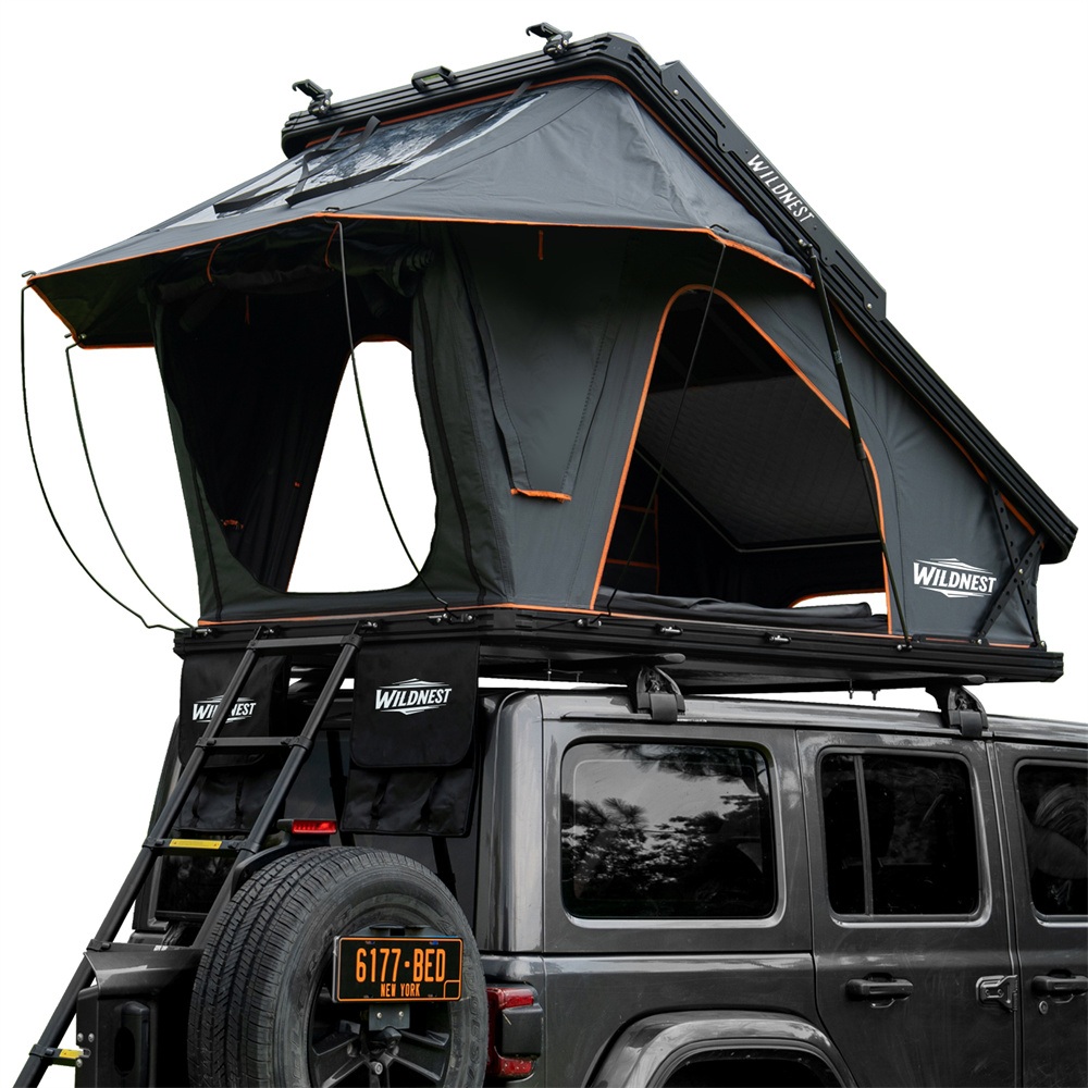 •WILDNEST Innovator HD rooftop tent comes with multi-port USB outlet, upgraded adjustable luggage racks, full-circle led light strip with various brightness and 3-in-1 style with skyview window, regular and TPU rain flies.